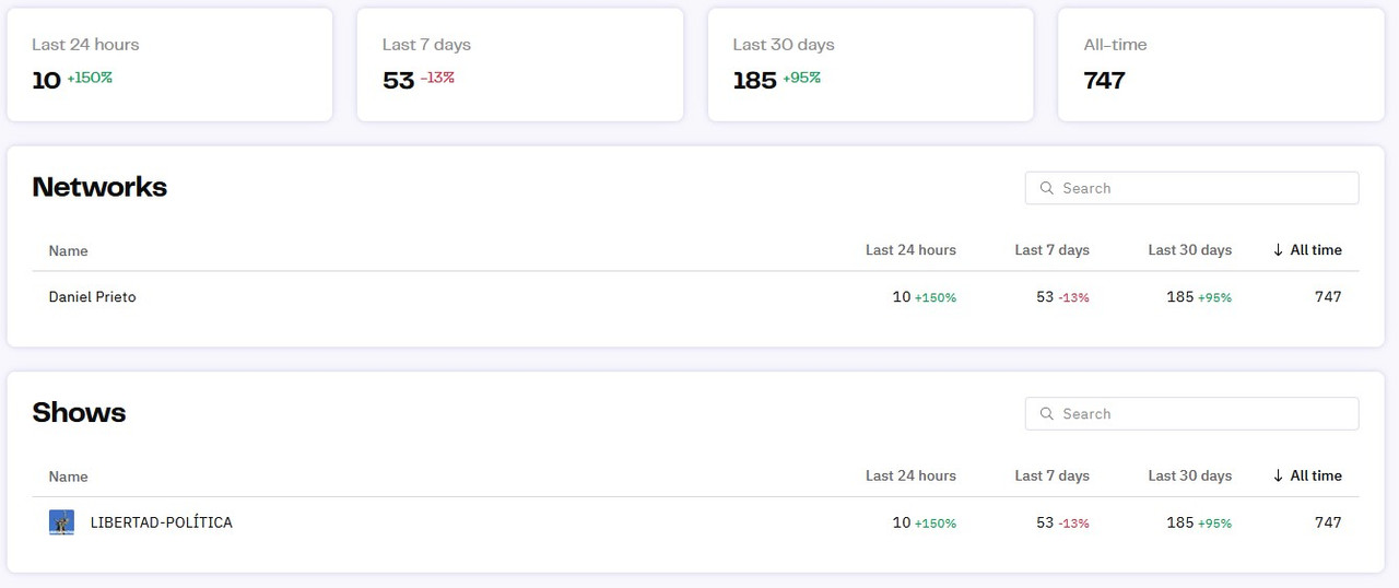 Os comparto las estadísticas del Podcast a día de hoy, como prueba y para que pongamos aquí temas relacionados con el Podcast.
